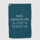 Serviette de golf avec latitude et longitude coordonnées carte pour la US Naval Air Station NAS Jacksonville en Floride Police Roboto style blanc sur arrière - plan bleu marine.