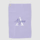 Purple Lavender Monogram Script Golf Towel, facile de personnaliser le nom et l'initiale dans le modèle de personnalisation en ligne avant de commander.