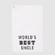 Un cadeau unique en forme de serviette de golf pour un oncle de golfeurs avec "World's Best Uncle" en lettres noires modernes.