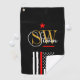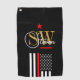 Golf Towel : Mince Red Line USA pompiers / pompiers personnel sur le thème de la serviette de golf avec moderne style "Monogrammed" Nom. Customisez-vous, votre collègue, vos amis et votre famille. Parfait pour l'ascension / la promotion, le prix de service long, la retraite.
