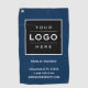 La serviette de golf de marque de l'entreprise comprend votre logo professionnel et des informations commerciales personnalisées - site Web, emplacement, courriel, téléphone, etc. - texte qui peut être personnalisé. Les couleurs bleu marine et blanc peuvent être changées.