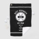 Élevez votre expérience de golf avec notre serviette de golf personnalisée. Ce design unique présente deux clubs de golf croisés sur un cercle blanc croquant, entouré d'un anneau d'accent blanc élégant. Un ruban assorti sur les clubs affiche votre choix de deux ou trois initiales de votre grand-père en lettrage blanc sophistiqué. La phrase « Meilleur Grand-Papa Par » est bien visible au-dessus et en dessous des clubs, accompagnée de trois étoiles et d'une zone personnalisable pour ajouter des noms en blanc.