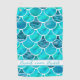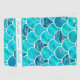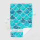 Motif à échelle de sirène à carreaux vert menthe et turquoise de couleur aquamarine. Les écailles sont aquarelles peintes et certaines remplies d'eau de mer en contraste. Un cadre blanc et bleu clair et Votre nom (x3) Le nom est écrit deux fois avec une feuille de style manuscrite et une fois avec une lettre de bloc. Parfait pour une journée d'été !