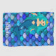 Bleu océanique et thème nautique. Motif à échelle de sirène bleu et violet. Avec une jolie princesse de sirène avec une tiare. Modèle pour un nom, lettres blanches.