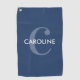 Moderne Simple Classic Initial Marine Blue Golf Towel avec un modèle moderne et un monogramme audacieux.