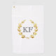 Cette serviette de golf est montrée avec une couronne de laurier d'or sur un arrière - plan blanc avec des initiales monogrammes personnalisées en noir. Customisez cet article et changez les initiales du monogramme en votre nom.