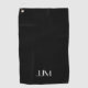 Serviette de golf avec trois monogramme ou nom initial blanc sur un arrière - plan noir. Personnalisez avec votre trois monogramme initial ou votre nom en utilisant le modèle facile. La couleur de police, le style de police et la taille de police sont personnalisables.