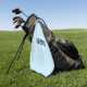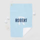 Serviette de golf moderne pour lui avec un monogramme blanc et un nom bleu foncé sur un arrière - plan bleu clair. Personnalisez avec le nom et l'initiale.