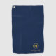 Cette serviette personnalisée est simple, sophistiquée et élégante. Il dispose d'un arrière - plan bleu marine avec un monogramme or et typographie de script pour votre personnalisation. Les couleurs peuvent être customisées à votre choix