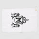 Deux chiens de garde au pochoir noir assis autour d'un monogramme personnalisable. Le cadre monogramme est réalisé dans un style de fer français décoratif.