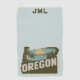 Serviette de golf présente une silhouette d'état rétro artistique de l'Oregon avec du texte sur arrière - plan bleu clair. Personnalisez au sommet avec monogramme ou nom