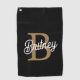 Serviette De Golf Monogramme moderne élégant Nom Black Gold Script