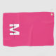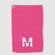 Créez votre propre serviette de golf personnalisée avec monogramme en écriture moderne rose. Cette serviette de golf féminine présente désormais un fond magenta vibrant pour une touche de couleur audacieuse et amusante. Le design comprend une initiale blanche épurée associée à un nom en écriture noire fluide, lui donnant un aspect personnalisé à la fois élégant et moderne. Imprimé sur un côté, il ajoute une touche mignonne et pratique à n'importe quel sac de golf. C'est un excellent cadeau pour les anniversaires, les fêtes, la fête des mères ou à tout moment où vous souhaitez célébrer un golfeur qui aime un mélange de style et de fonctionnalité. Parfait pour quiconque aime garder les choses lumineuses, chic et personnelles sur le parcours.