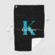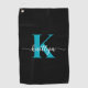 Cette serviette de golf simple et moderne avec votre prénom dans une police de script tendance en blanc et votre première initiale dans une police de caractères casquette moderne en turquoise sur noir est parfaite pour vous. C'est design, tendance et pourtant très classique. C'est unique - comme vous ! Prenez un couple afin que vous ayez toujours un propre à portée de main.