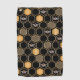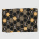 This contemporains objets a geometric gold color beehive pattern, bumblebees, and a black color background.