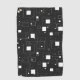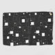 Cette image présente un motif géométrique moderne et abstrait en noir et blanc. Il se compose de carrés de différentes tailles et de rectangles disposés aléatoirement sur un arrière - plan noir. Certaines formes sont blanches, d'autres sont surlignées, créant un effet superposé. De petits points et des éléments en pixels sont éparpillés partout, ajoutant profondeur et texture. Le design général est minimaliste et traduit une esthétique numérique ou futuriste.