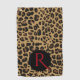 La serviette de golf élégante de la dame est imprimée en jaguar brun, noir et bronzé. Un gros monogramme rouge d'une lettre est prêt à être personnalisé. Super idée cadeau. Des accessoires de golf correspondants sont disponibles.
