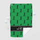 Cette serviette de golf verte classique présente une silhouette répétitive de golfeur masculin en noir, associée à une bande noire audacieuse accentuée de deux bandes blanches. Un modèle de monogramme personnalisable vous permet d'ajouter des initiales ou un court mot en lettrage blanc net. Le design a un look audacieux et masculin et fait un excellent cadeau personnalisé pour les golfeurs masculins. Toutes les couleurs et le texte peuvent être modifiés dans l'outil de conception de Zazzle.
