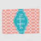 Motif de treillis rose et ogee élégant et tendance dans l'arrière - plan, surmonté d'un étiquette bleu turquoise clair avec un nom personnalisable et un modèle monogramme.