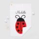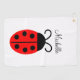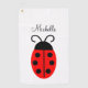 Mignonne serviette de golf de nom de coccinelle rouge et noire. Facile à modifier le texte.