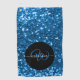 Serviette De Golf Nom de parties scintillant bleu monogramme élégant
