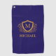 Serviette De Golf Nom du monogramme personnalisé bleu et or de la ma