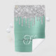 Créez votre propre serviette de golf monogramme personnalisée. La parties scintillant gris argenté et fausse feuille de couleur turquoise claire dérive le graphisme de l'art numérique. Customisez le monogramme décoratif noir et blanc avec un design élégant de style signature calligraphie. Vous pouvez customiser et modifier le style de police ou la couleur que vous préférez. Certaines lettres sont très décoratives et vous pourrez déplacer votre initiale si vous le souhaitez. Tous les effets de parties scintillant brillants et brillants satinés s'impriment comme une photo sur votre cadeau.