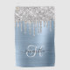 Créez votre propre serviette de golf monogramme personnalisée. Bleu clair foncé couleur fausse feuille et gris argenté parties scintillant goutte art numérique graphique. Customisez le monogramme décoratif noir et blanc avec un design élégant de style signature calligraphie. Vous pouvez customiser et modifier le style de police ou la couleur que vous préférez. Certaines lettres sont très décoratives et vous pourrez déplacer votre initiale si vous le souhaitez. Tous les effets de parties scintillant brillants et brillants satinés s'impriment comme une photo sur votre cadeau.
