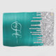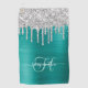 Créez votre propre serviette de golf monogramme personnalisée. Aqua turquoise ombre dégradé couleur fausse feuille et gris argenté parties scintillant goutte d'art numérique graphique. Customisez le monogramme décoratif turquoise clair et blanc avec un design élégant de style signature calligraphie. Vous pouvez customiser et modifier le style de police ou la couleur que vous préférez. Certaines lettres sont très décoratives et vous pourrez déplacer votre initiale si vous le souhaitez. Tous les effets de parties scintillant brillants et brillants satinés s'impriment comme une photo sur votre cadeau.