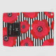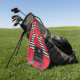 Serviette décorée d'un monogramme de golf comportant les pavots rouges contre les rayures noires et blanches.