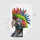 Funny Punk Rocker Parrot avec coiffure mohican portant une veste en cuir.