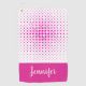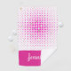 Une serviette géométrique de golf de motif faite dans des carrés de rose et de blanc avec des accents bleus et verts. Une bande rose, à travers le fond de la serviette de golf a le texte blanc fait sur commande prêt à personnaliser.