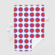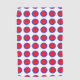Pois rouge décrit dans le bleu sur un fond blanc.
