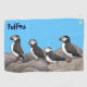 Des macareux se reposent sur les rochers. Lecture de texte personnalisable, "Puffins" apparaît également. Le Puffin Atlantique (Fratercula arctica) se nourrit principalement de plongée dans l'eau. Ils se reproduisent dans de grandes colonies sur des falaises côtières ou des îles au large de l'Atlantique Nord. Après la saison de reproduction, les macareux versent les parties extérieures colorées de leur bec, laissant un bec plus petit et plus pâle. Leurs ailes courtes sont adaptées pour nager avec une technique de vol sous l'eau. En l'air, ils battent rapidement leurs ailes (jusqu'à 400 fois par minute) en vol rapide, volant souvent au-dessus de la surface de l'océan.