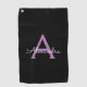 Nom Monogramme noir et violet serviette de golf. Cela rend le cadeau parfait pour 16 ans, mariage, douche nuptiale, anniversaire, baby shower ou bachelorette pour quelqu'un qui aime le luxe glam et les styles chic.