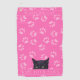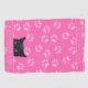Serviette de golf empreinte de patte rose et foncée avec un chat noir. Ajoutez le nom de votre chat (ou le vôtre) et une ligne de texte. J'ai écrit : Essuyez vos pattes. Qu'écririez-vous ?