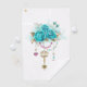 Clé d'or antique aux roses turquoise tendance décorée de feuilles d'or blanc et de perles rose et bleu. Couleur tendance. Rose turquoise. Blanc doré. Tiffany bleu.