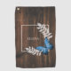 Personnalisez une serviette unique pour jouer au golf avec une serviette de golf personnalisée Rustic Blue Butterfly. Le design des serviettes comprend un papillon animé reposant sur un feuillage délicat et un espace pour ajouter votre nom à un arrière - plan en bois rustique. Autres cadeaux disponibles avec ce design ainsi qu'une variété de couleurs.