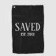 Minimal Saved Established Christian Easter Golf Towel with CUSTOMIZABLE YEAR and classic white caps serif font. Perfect gift for Christians of all ages, and especially during Easter or for a newly saved golfer. Contact me if you're a church or faith-based group and would like extra branding with your logo. Ideal personalized unisex Christian Saved Golf Towel for all ages. Matching gifts available. Also in white.