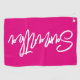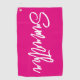 Créez votre propre serviette de golf personnalisée rose chaud. Customisez l'arrière - plan vibrante avec sa couleur préférée. Le nom est composé d'un blanc moderne écrit à la main, écriture manuscrite style calligraphie de script de brosse. Customisez la couleur, la taille et le style de la police dans cette conception de texte. Vous trouverez une poignée de calligraphies audacieuses et modernes dans le système. Pour les noms plus courts, vous pouvez augmenter la taille de la police.