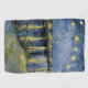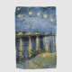 Chalets à Cordeville. Vincent Willem van Gogh.Paysage nocturne dans les tons bleu foncé et jaune. Il y a un pont à travers la rivière. Au premier plan, un homme et une femme marchent le long du remblai. Les étoiles brillent dans le ciel. Reproduction d'oeuvres d'art célèbres dans le domaine public.