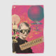 Kitschy collage caractéristiques teinté 1930s découpe photo de femme avec des lunettes vapeur ajoutées, luminaire vintage et machine volante, ruban lavi avec texte "remorblazer" sur magenta coloré rose et or pop art arrière - plan