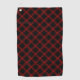 Serviette De Golf Tartan rouge rustique et noir avec lignes gaufrées
