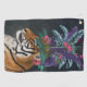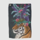 Hot House Tiger 2 par Fab Funky. Un tigre repose avec des fleurs tropicales et de la verdure au-dessus de sa tête comme un chef-d'oeuvre.| 192437GG