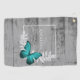 Personnalisez une serviette unique pour jouer au golf avec une serviette de golf Turquoise Papillon Rustique personnalisée. Le design des serviettes comprend un papillon animé reposant sur un feuillage délicat et un espace pour ajouter votre nom à un arrière - plan en bois rustique. Autres cadeaux disponibles avec ce design ainsi qu'une variété de couleurs.