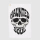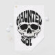 Crâne noir et blanc gras avec typographie 'Hanté'/'Âme' incurvée ; motif gothique à fort contraste pour les fans d'Halloween, de rock et de mode urbaine à la recherche d'un bord intrépide.