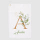Un monogramme vert eucalyptus or parties scintillant serviette de golf personnalisée avec le nom, peut être utilisé pour Fête des mariées, Baby shower, Fiançailles Mariage, Anniversaire ou fête d'anniversaire. Le design Extraordinaire présente des feuilles d'eucalyptus vert aquarelle tissés en lettre A et des éclaboussures et éclaboussures en faux or mélangés. Eucalyptus feuilles de verdure élégamment tissé en faux feuille d'or lettre A et donne à l'esthétique à toute la vision. Personnalisé avec le nom, Design peut être utilisé pour la Fête des mariées, le Baby shower, le Fiançailles Mariage, Anniversaire ou fête d'anniversaire. Contactez-moi pour les articles correspondants ou pour la personnalisation, Violet Prints ©