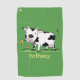 Serviette De Golf Vache mignonne en vert dessin animé sur le terrain