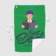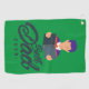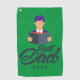 Serviette de golf verte avec photo d'un homme lisant un livre.