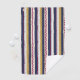 Vertical and horizontal views of a pouch with navy blue, maroon, gold stripes, and zigzag patterns on a white background, creating a vibrant, bold design.